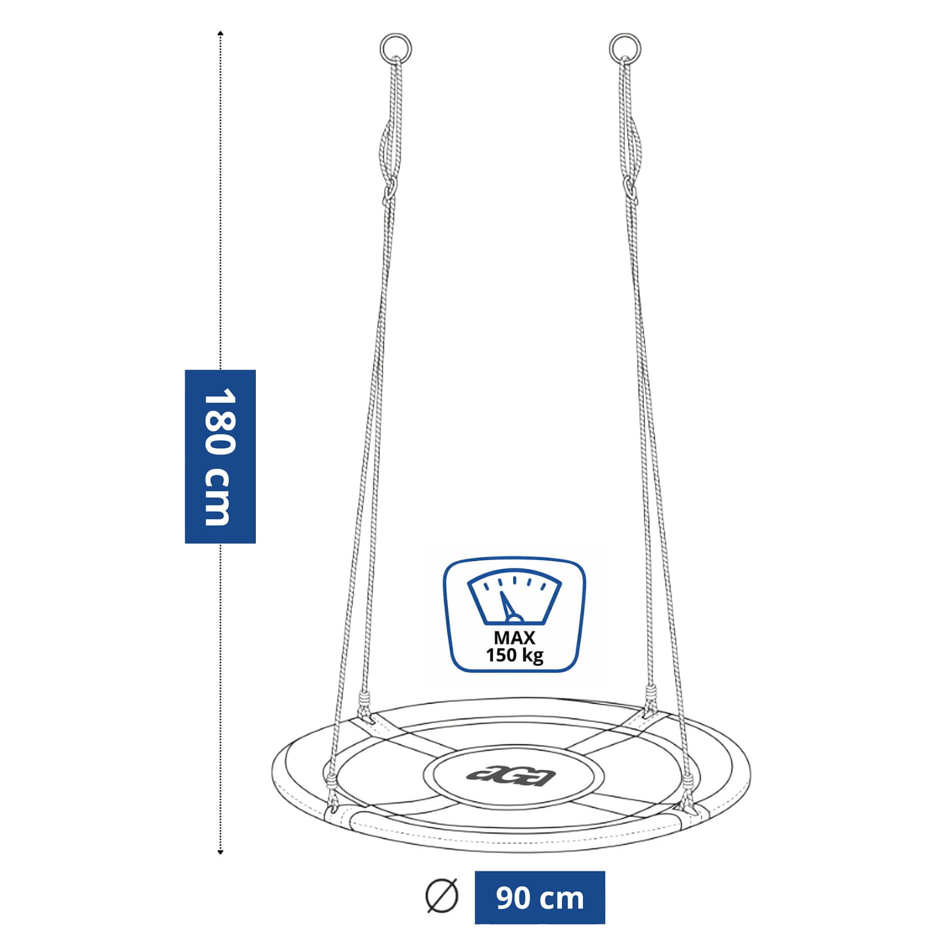 Čelična konstrukcija s nosivosti do 150 kg. Okvir je zaštićen pjenastim podstavom kako bi vaše dijete bilo sigurno i istovremeno imalo udobnost tijekom ljuljanja.