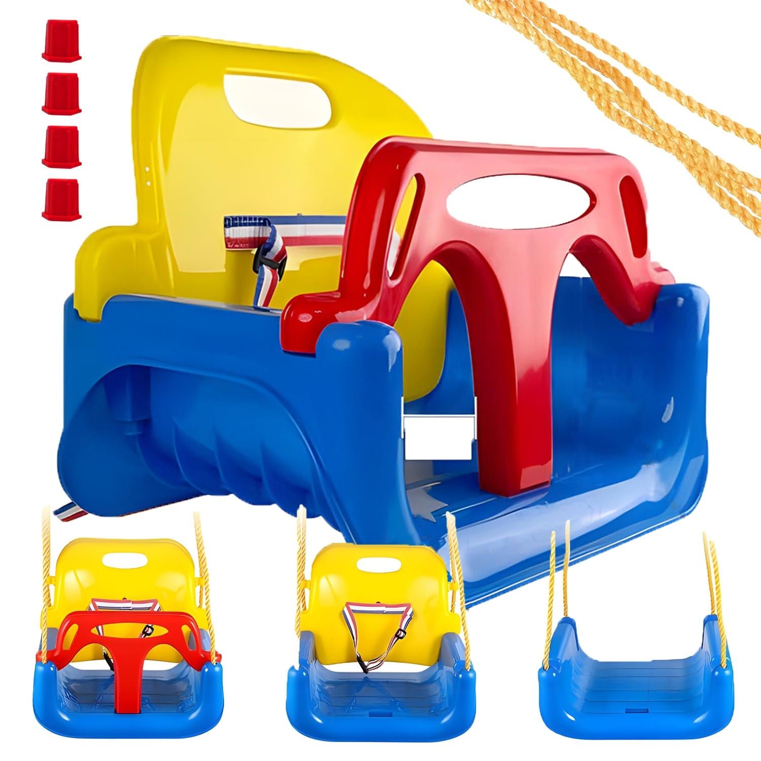 Osigurajte sigurno i zabavno iskustvo igre uz 3u1 PVC dječju ljuljačku sa zaštitom koja je primjerena za djecu do 30 kg. Ova višenamjenska ljuljačka idealna je za različite dobne skupine i raste s vašim djetetom jer se lako prilagođava trima različitim fazama razvoja. Siguran i stabilan dizajn s prednjom zaštitnom ogradom i naslonom za leđa osigurava bezbrižnu igru i za najmlađe, dok jednostavno uklanjanje zaštitnih dijelova omogućuje da ljuljačka raste s djetetom.