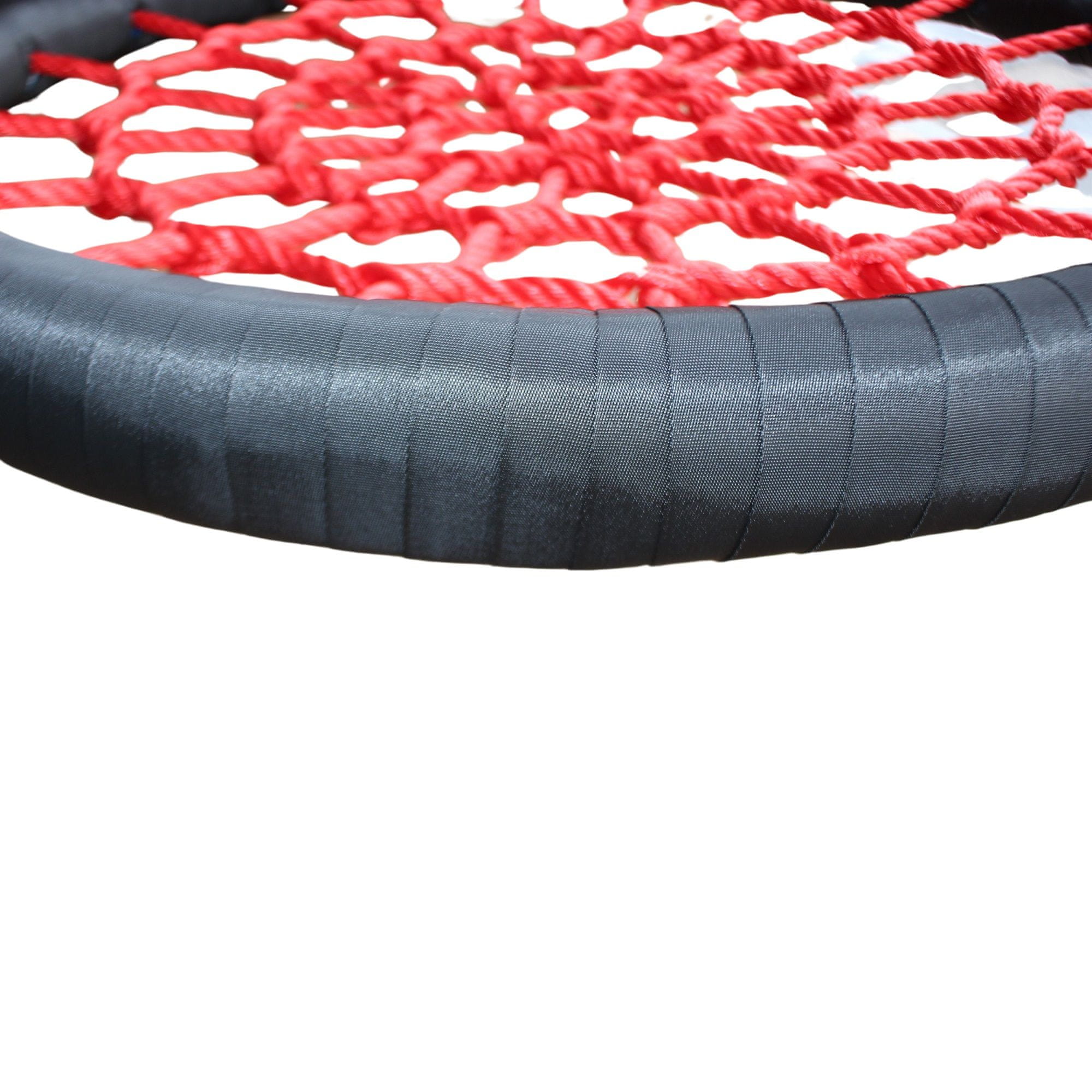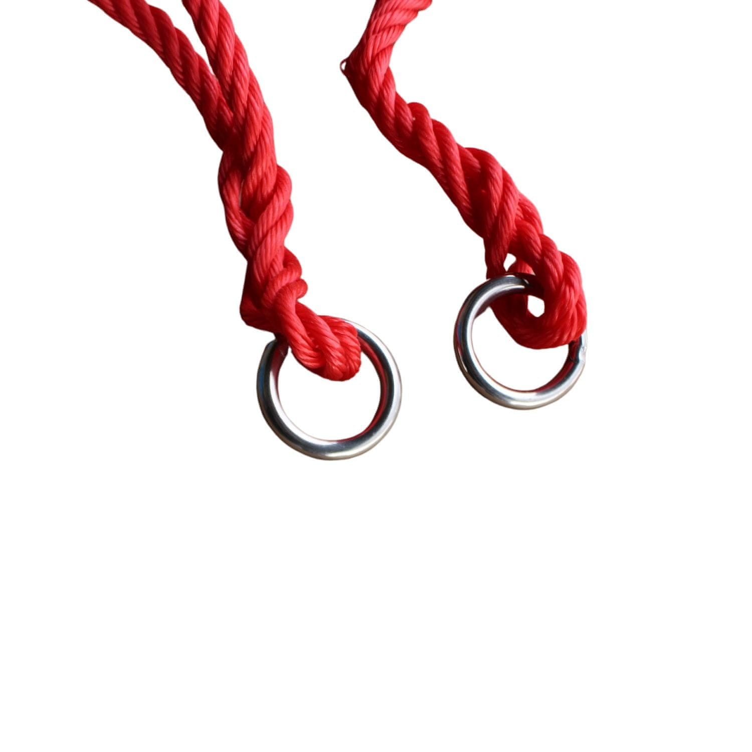 prsten je podstavljen, konopi su najlonski sa čeličnim prstenom preporučena dob: od 3 godine vanjski promjer kruga: 85 cm nosivost: 100 kg duljina užeta cca. 150 cm promjer užeta: 1,5 cm boja: crna/crvena