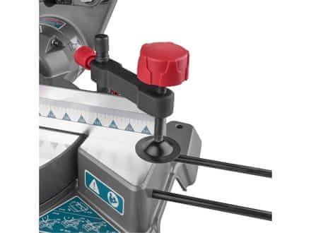 ručnim ravnim ili kružnim pilama, te se stoga kutovi rezanih materijala neće poklapati kako bi trebali zbog netočnosti. • Pila je opremljena laserskim izvorom napajanim iz mreže koji projicira crvenu liniju na materijal za precizno vođenje rezanja. To povećava točnost kuta rezanja u usporedbi s ručno crtanom linijom rezanja, koja može dovesti do netočnih kutova rezanja. • Pila je također opremljena hodom motorne jedinice za rezanje širih obradaka, graničnikom dubine za rezanje utora i izvlačnim osloncima obradaka s blokadom za rezanje duljih materijala.