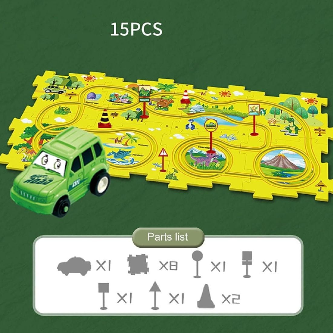 Set uključuje više dijelova staze koji djeci omogućuju jednostavno stvaranje različitih izgleda, poboljšavajući njihovu kreativnost i vještine rješavanja problema.
