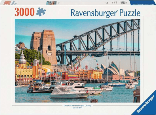 Ravensburger slagalica od 3000 dijelova s vrhunskom SoftClick tehnologijom prikazuje poznatu opernu pozornicu i most, koji su simboli ovog australskog grada. Sa svakim dijelom slagalice otkrit ćete detalje gradske panorame, luke i prekrasne prirode koja okružuje grad.