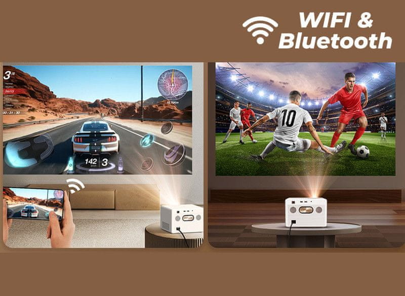 - WiFi i Bluetooth – Zahvaljujući bežičnoj WiFi povezivosti i ugrađenoj Bluetooth vezi, možete koristiti internet i povezati projektor s drugim vanjskim pametnim uređajima.