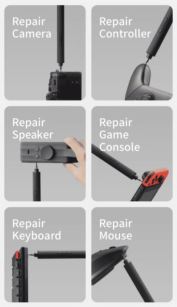 Set električnog odvijača nudi sve što je potrebno za precizne sitne popravke. Sadrži 25 visokokvalitetnih bitova od izdržljivog čelika S2, idealnih za sve vrste malih vijaka u satovima, fotoaparatima, naočalama i slično. Zahvaljujući dvama radnim načinima možete jednostavno prebacivati između automatskog i ručnog odvijanja za bolju kontrolu. Ergonomsko aluminijsko kućište s protukliznom površinom osigurava udobno držanje tijekom korištenja. Integrirani magnet drži vijke na bitovima. Odvijač se jednostavno koristi jednom rukom, a ugrađena punjiva baterija pruža maksimalnu praktičnost tijekom rada. Ovaj odvijač idealan je za DIY projekte, popravke elektronike i detaljne zanatske radove.