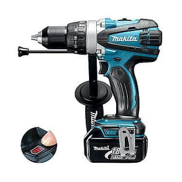 Akumulatorska udarna bušilica-odvijač Makita DHP458RFJ je izvanredno lagana i kompaktna. Konstrukcija zupčanika je metalna. Cijeli opis
