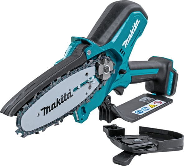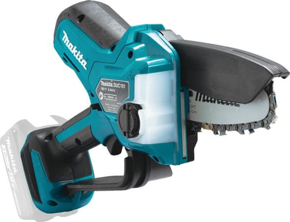 Makita DUC101Z LXT akumulatorska motorna pila za obrezivanje ima kompaktan i snažan dizajn, automatsko podmazivanje lanca, prekidač za zaključavanje, duljinu oštrice od 100 mm i spremnik za ulje od 0,055 L.