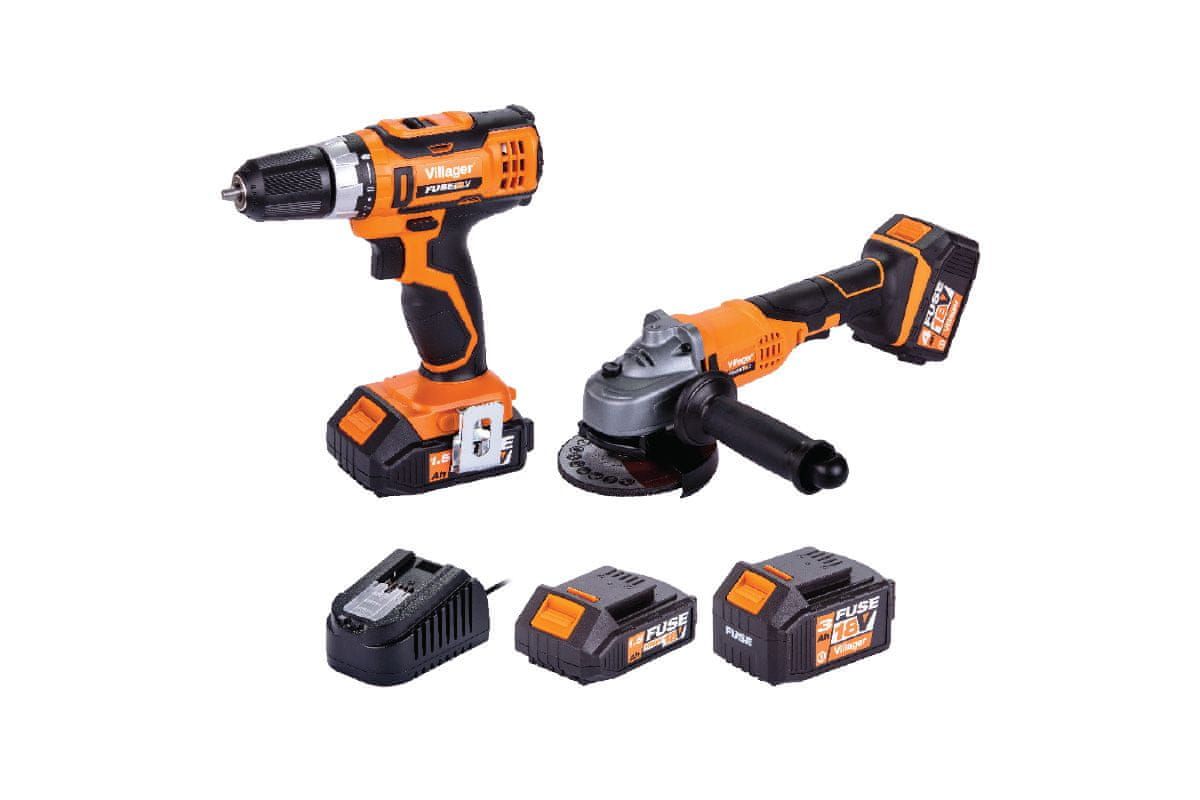 Set akumulatorskog alata Villager sastoji se od bušilice VLN 3220 i brusilice VLN 4320. U setu su dvije baterije i punjač.