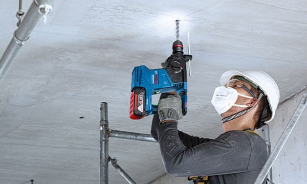 BOSCH Professional GBH 187-LI ONE Chuck akumulatorska udarna bušilica krasi napredne sustave KickBack Control i Vibration Control, glavu s dvostrukim stezanjem i integriranim modulom , koji omogućuje povezivanje. Dizajniran je s 4.350 udaraca u minuti, motorom bez četkica i udarnom snagom od 2.4 J. Alat uključuje bušenje u drvo (30 mm), metal (13 mm) i udarno bušenje u beton (4–24 mm, optimalno 6–14 mm).