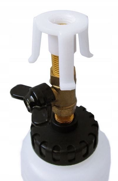 - Uređaj je s jedne strane spojen na mrežu komprimiranog zraka putem ulaza od ¼”, a s druge strane na odzračivač kočionog sustava. Vakuum stvoren u spremniku omogućuje usisavanje kočione tekućine iz sustava bez potrebe za „pumpanjem“ papučice kočnice.