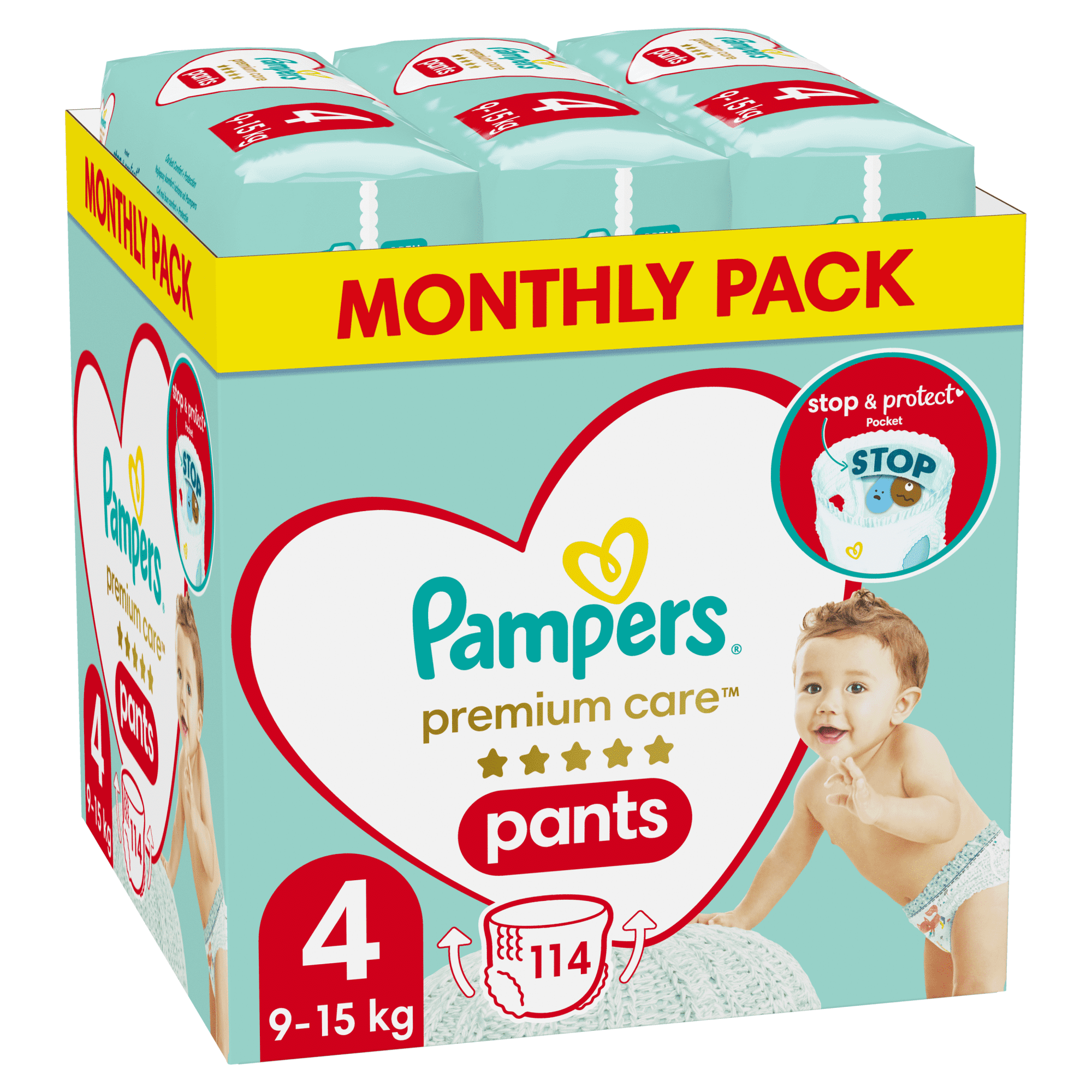 Pelene Pampers Premium Care imaju jedinstveni džep Stop & Protect, koji sprječava povratni protok vode i osigurava do 12 sati suhoće. Omogućite svom djetetu udobnost i zaštitu tijekom spavanja i igre.