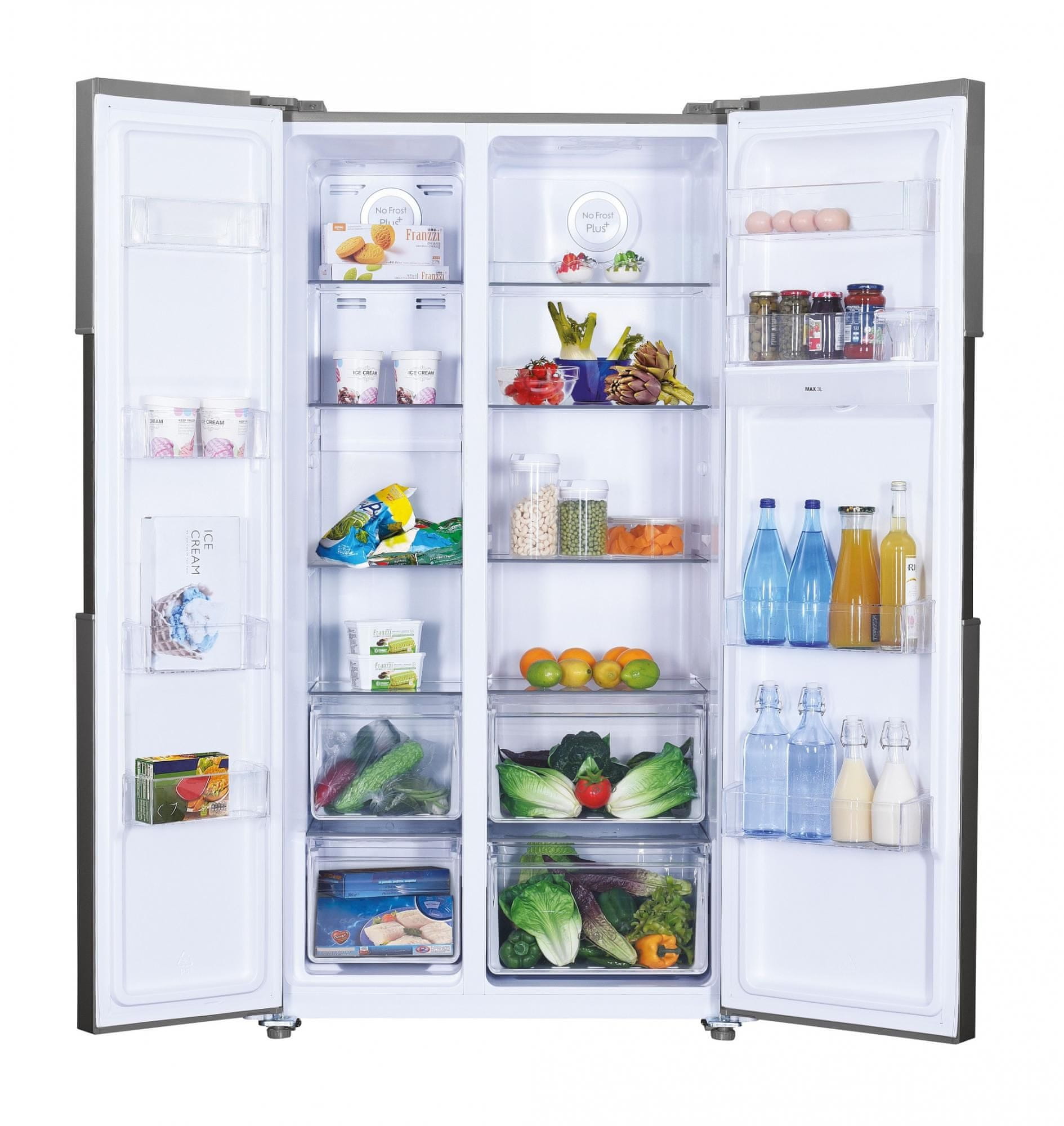 Veliki američki hladnjak Candy CHSBSO 6174 XWD pruža maksimalni volumen za pohranu hrane i uklapa se u svaku kuhinju. Može se pohvaliti NO FROST tehnologijom, automatskim odleđivanjem odjeljka hladnjaka i zamrzivača i dispenzerom za vodu sa rezervoarom. Ima posebne funkcije za brzo hlađenje i brzo zamrzavanje te eko funkciju za hlađenje uz najmanju potrošnju električne energije.