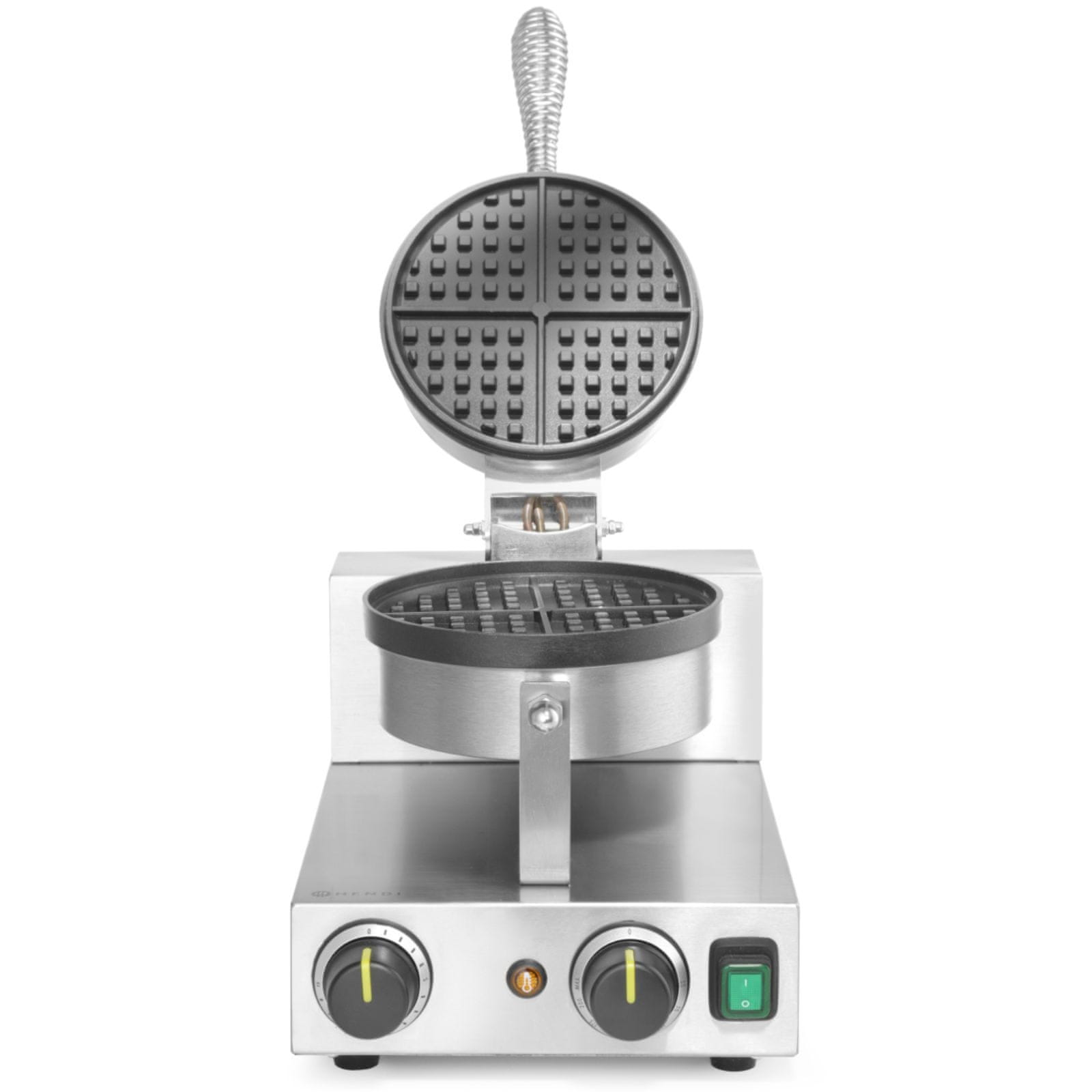 Okrugli aparat za vafle Hendi idealan je prijedlog za sve vrste ugostiteljskih objekata koji žele proširiti svoju ponudu ukusnim vaflima u belgijskom stilu . Također će biti savršeno rješenje za samoposlužni doručak u hotelima. Okrugli aparat za vafle izrađen je od lijevanog aluminija prekrivenog izdržljivim teflonskim neprianjajućim premazom. Veličina vafla: promjer ø190 mm, debljina do 23 mm . Kapacitet je do 20 vafla na sat . Temperatura se podešava postupno pomoću termostata u rasponu od 50˚C do 220˚C . Tajmer s rasponom do 15 min .