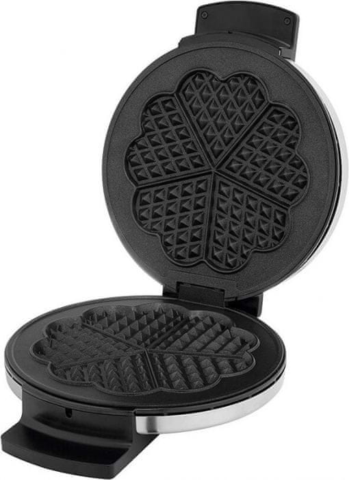 Estektski pekač vafla za slasne vafle u obliku srca. Izrađen od nehrđajućeg i visokokvalitetnog Cromargan čelika s dvije neprianjajuće ploče koje sprečavaju lijepljenje hrane na ploču i ugrađenim ventilatorom. Sa snagom 900 W, jamči idealne temperature gotovo bez čekanja, a omogućuje i postavljanje razine zapečenosti vafla. Na kraju jednostavnog čišćenja, pekač se može spremiti u okomiti položaj kako bi se dobio prostor u kuhinjskom ormaru.
