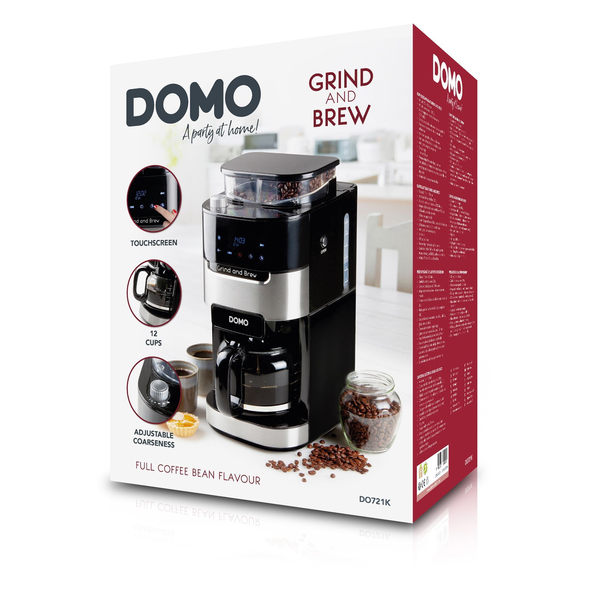 DOMO DO721K Grind and Brew aparat za kavu može se pohvaliti kapacitetom pripreme do 12 šalica kave. Aparat je prikladan za mljevenu kavu i kavu u zrnu.