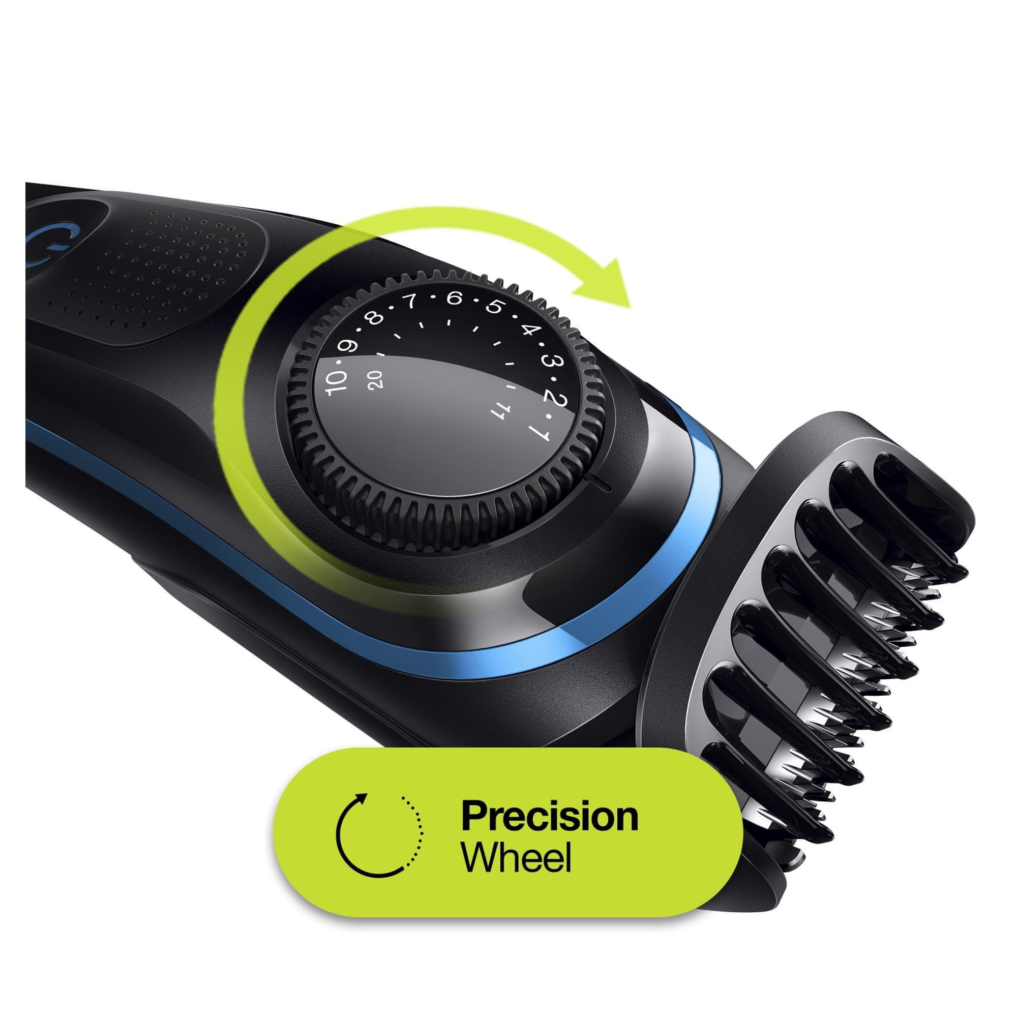 S okretnim kehanizmom možete podesiti duljinu reza po 0,5 mm korak. Doživotno oštre oštrice osiguravaju ravnomjerno obrezivanje kose i brade.