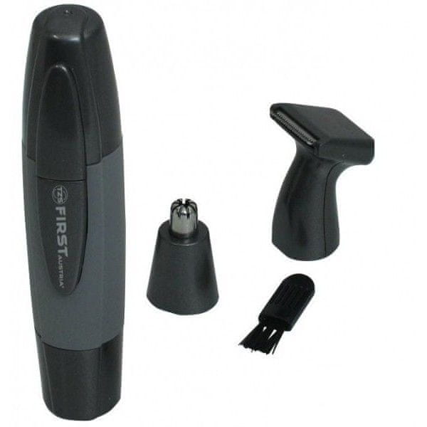 Aparat za uređivanje brade First Austria 005680–1 ima dvije zamijenjive glave za podšišavanje brade i nastavak za nos.