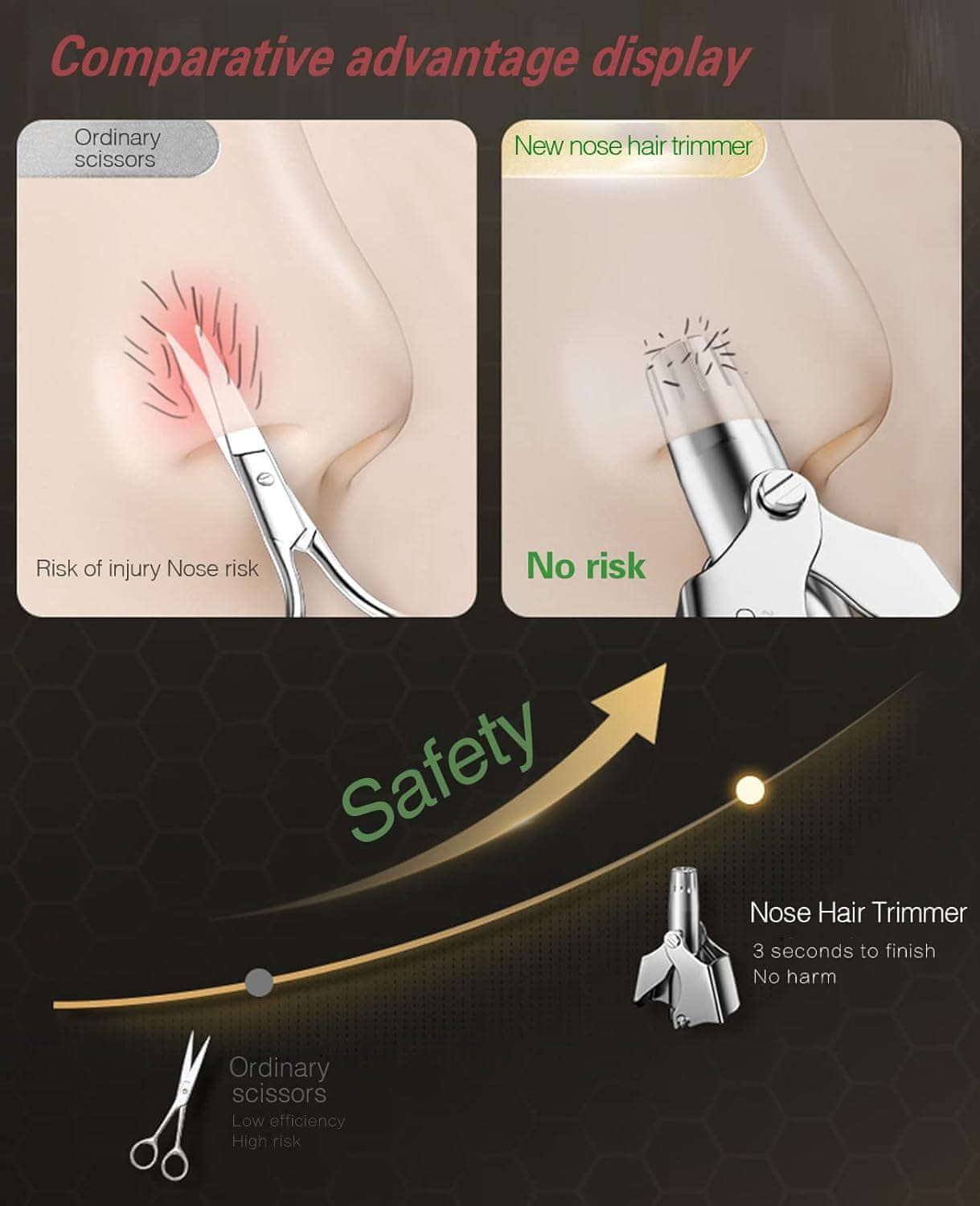 Dosadne dlake, posebice na licu, vječni su problem oba spola. S godinama se stopa rasta kose kod muškaraca povećava za 100%. Ne samo da je vizualno neugodno, nego kosa na sebe veže mikrobe i prljavštinu, pa je neugodna i s higijenskog gledišta. Neki ljudi problem rješavaju pincetom ili voskom, a ponekad čak i tako da rukom uhvate dlačice koje strše i brzo ih povuku. Posljedice toga su sigurno poznate: jaki bolovi, suzenje očiju, grimase, piskav glas itd. Ovi zahvati su izuzetno bolni, dugotrajni i krajnje neprimjereni. Možete čak oštetiti nosnu šupljinu. Može doći do upale jer se otvorena rana u nosu može zaraziti mikrobima nakon uklanjanja dlaka. Osim toga, dlačice u nosu teško da ikada možete precizno uhvatiti pincetom, pa postupak morate ponavljati nekoliko puta. Krajnje neugodno!