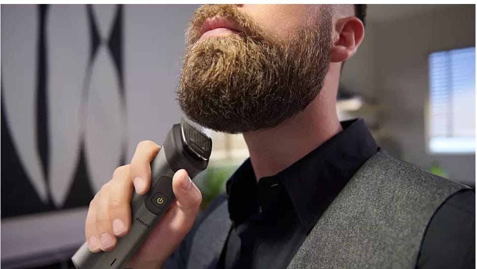 Trimer provjerava gustoću brade 125 puta u sekundi i povećava snagu prema potrebi za guste, jake brade.