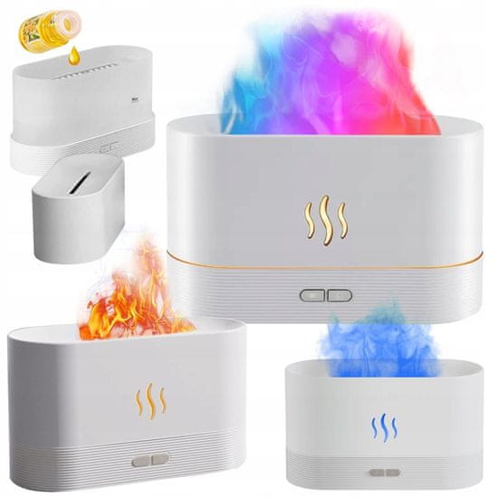 - Kompaktan i štedljiv ovlaživač zraka sa šarenim RGB LED pozadinskim osvjetljenjem koje imitira plamen.