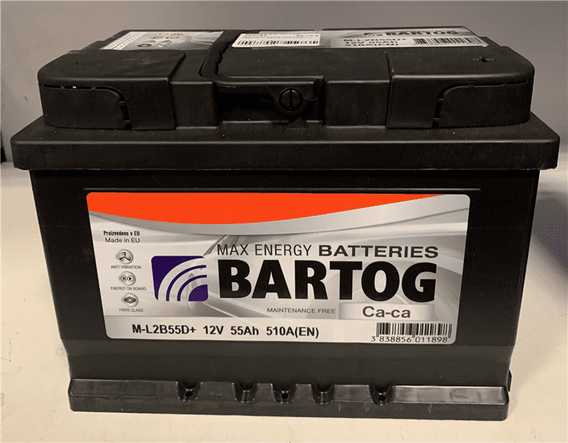 Akumulator za osobno vozilo, kapaciteta 55 Ah.