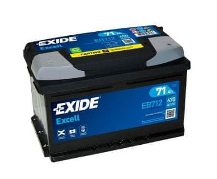 Exide Excell EB712 akumulator, 71 Ah, D+, 670 A(EN), 278 x 175 x 175 mm