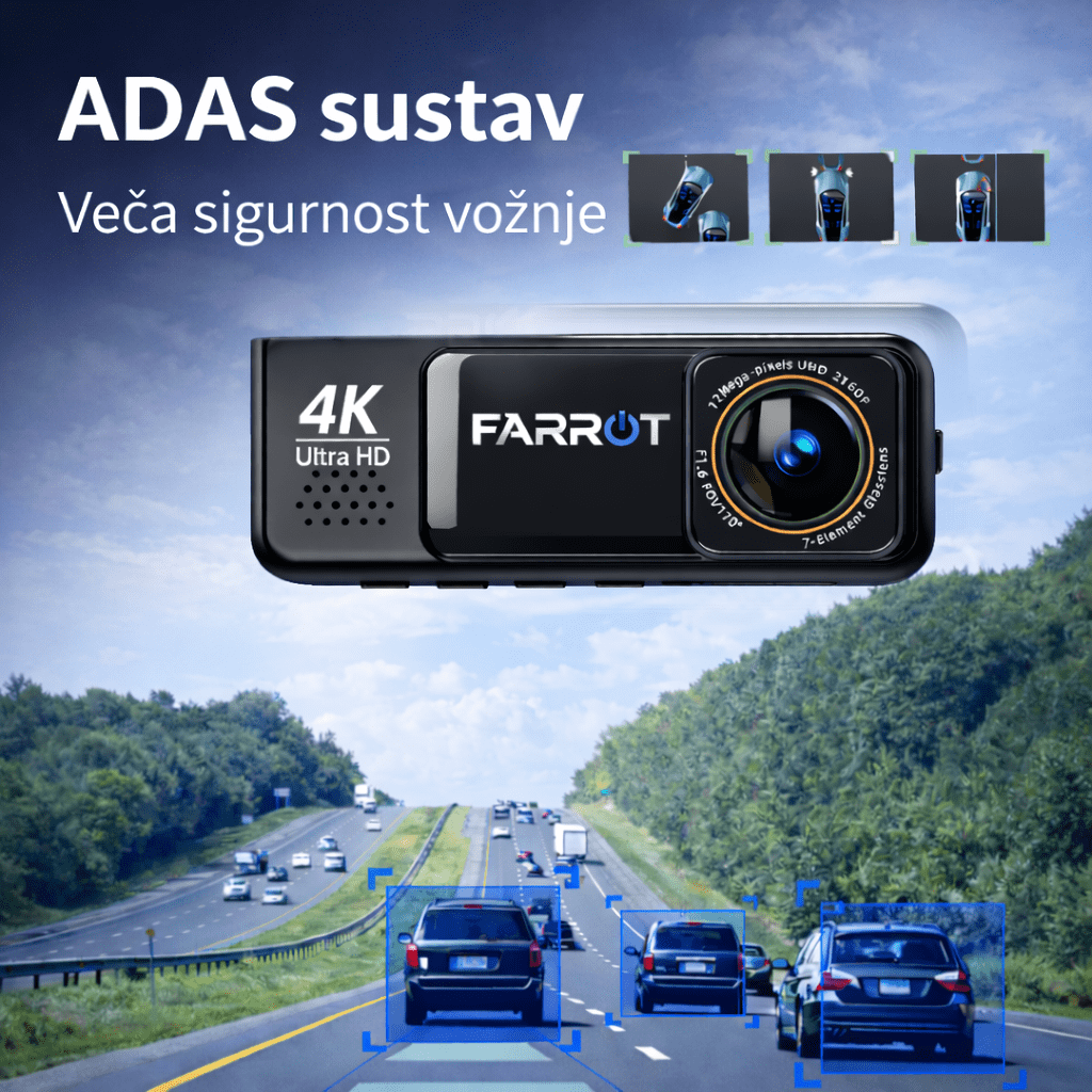Napredna 4K dashcam s GPS-om, ADAS-om i dvostrukom kamerom za maksimalnu sigurnost i evidenciju vožnje.