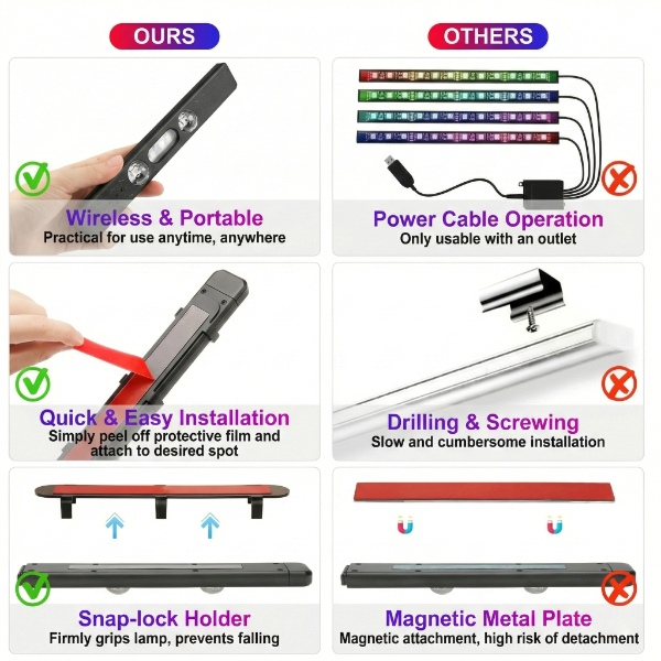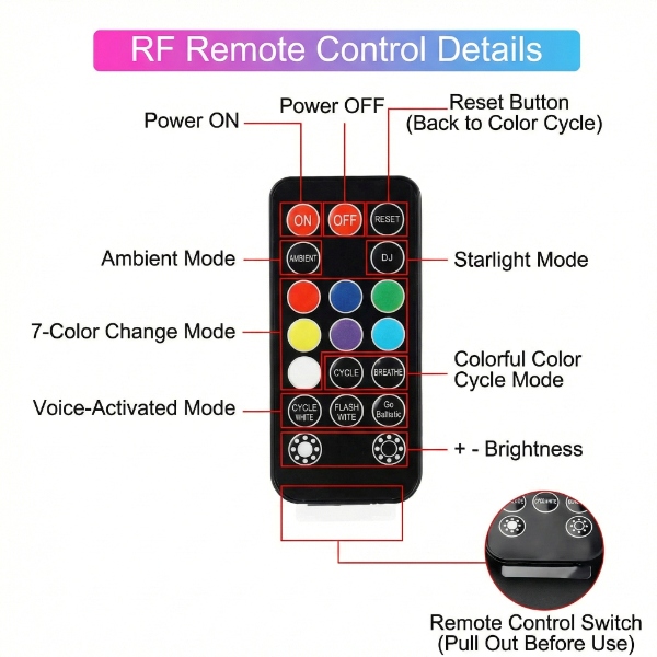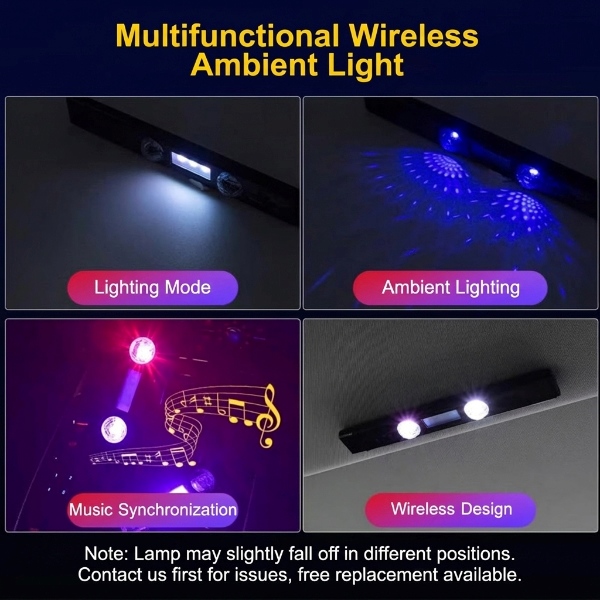 🌈 Stvorite ritmičnu atmosferu u vožnji s LUMEZIN bežičnim ambijentalnim svjetlom. Reagira na glazbu, nudi 7 boja i 5 uzoraka, lako se postavlja magnetski i radi tjednima s jednim USB punjenjem. Pamti zadnje postavke za brzo korištenje.