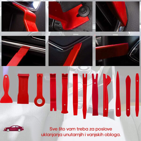 Uklanjanje obloga automobila bez pravog alata može biti zastrašujuće. Naš komplet uključuje 38 različitih alata dizajniranih posebno za jednostavno i sigurno uklanjanje unutarnjih i vanjskih obloga. Omogućuje vam da sami izvršite male popravke i podešavanja bez napora. Savršeno za rješavanje neočekivanih problema tijekom dugih putovanja.