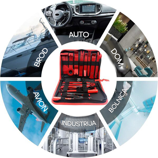 Uključeni alati: 38 komada (alati za skidanje ukrasa, kliješta za skidanje kvačica, alat za struganje, skidači kopči za presvlake, precizne kukice za kuke, alati za skidanje stereo uređaja, automatski terminali)