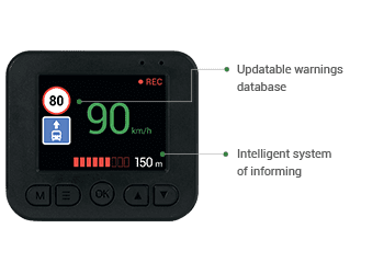 To će vam kao vozaču pružiti ažurnu GPS antenu i ažuriranu bazu podataka koja će vam pružiti ažurne i ažurne podatke o kamerama, potencijalno rizična područja i usluge / radni uvjeti. Inteligentni sustav vozaču pruža vizualna i zvučna upozorenja koja se aktiviraju oko 450 metara prije mjesta postavljanja kamere ili drugih ograničenja na cesti.