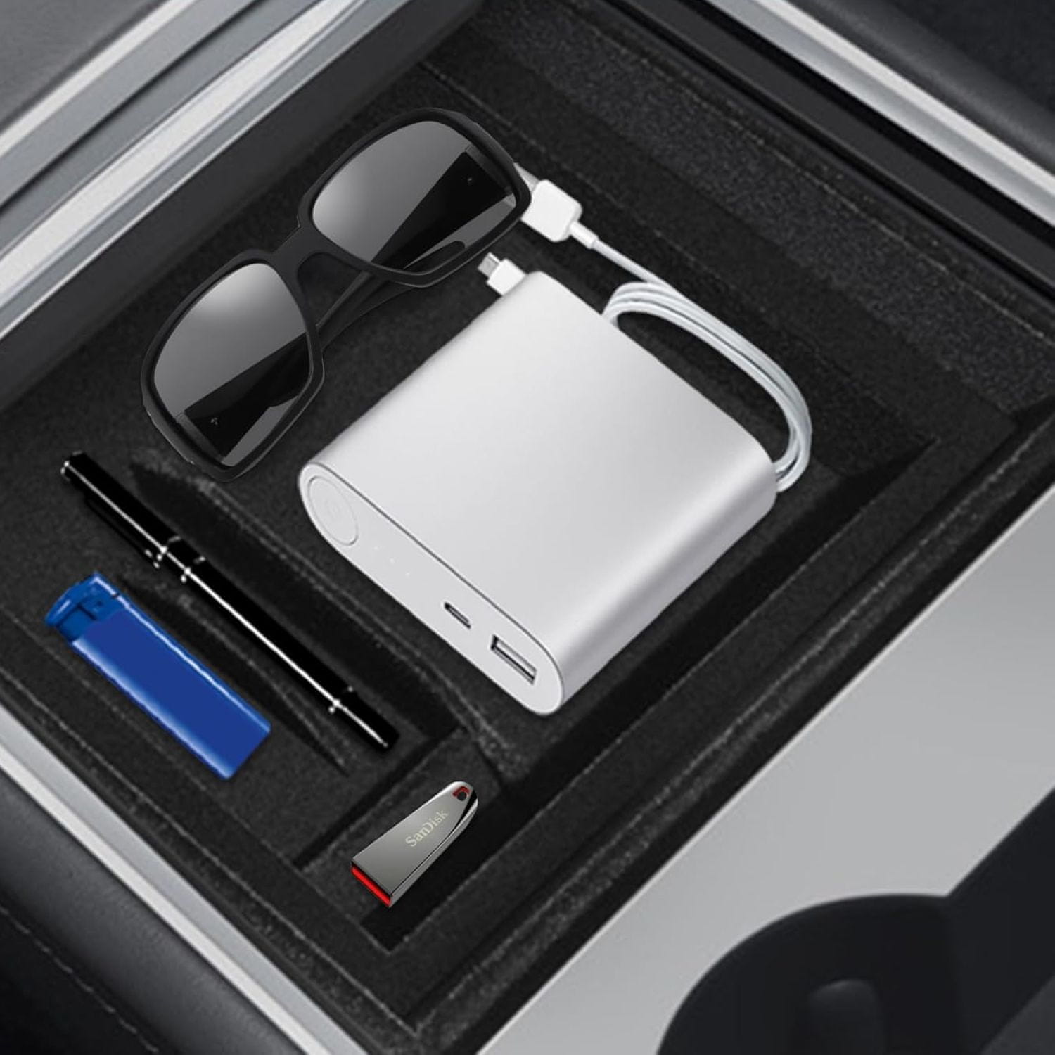 Ovaj funkcionalni organizator središnje konzole dizajniran je za modele Tesla Model 3 i Model Y proizvedene između 2019. i 2023. godine (verzija središnje konzole Refresh). Njegova je svrha pomoći u održavanju reda i optimalnom iskorištavanju prostora ispod naslona za ruku, omogućujući brz pristup manjim predmetima. Izrađen je od izdržljive ABS plastike, otporne na svakodnevnu upotrebu. Unutrašnjost je opremljena protukliznim gumenim umetcima koji sprječavaju pomicanje i buku pribora tijekom vožnje, čime se povećava udobnost i sigurnost.