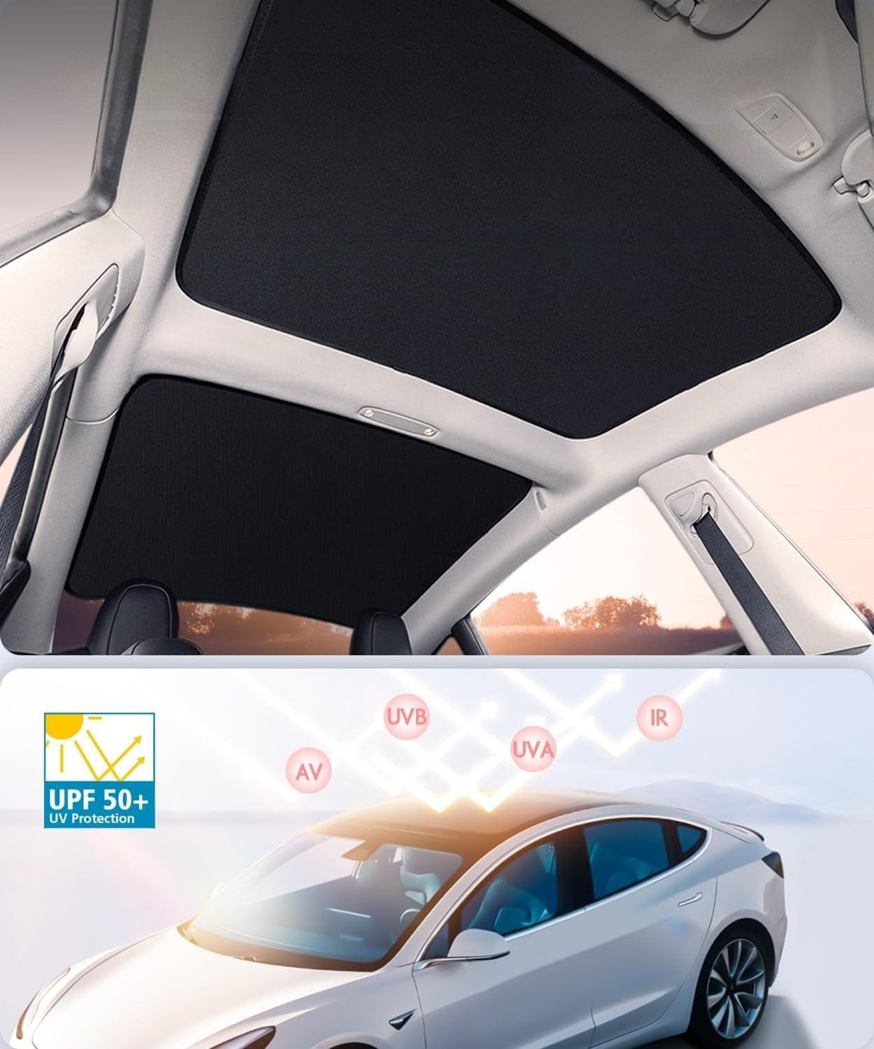 Nikcorp Sjenilo za sunce za Tesla Model 3 (2021-2024), krovno, dvoslojno, srebrna reflektirajuća toplinska zaštita, UV blokada