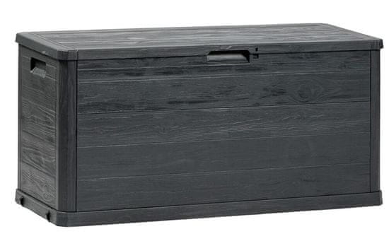 Kutija za odlaganje WOODYS 280 L – grafit marke TOOMAX. Reciklirana plastika, imitacija drva. S volumenom od 160 litara, ova kutija pruža dovoljno prostora za vaše potrebe. Zahvaljujući poklopcu, koji se može zaključati, možete pohraniti svoje dragocjenosti bez straha od neovlaštenog pristupa.