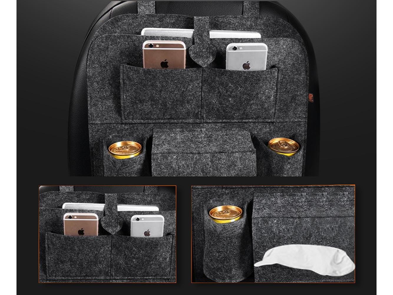 Organizator se jednostavno sastavlja, samo otkopčajte čičak i pričvrstite ga na naslon za glavu stolice. Osim toga, rokovnik ima trake završene s kukama koje se mogu postaviti ispod sjedala. Izrađen je od filca ugodnog na dodir, zahvaljujući kojem će se lako čistiti.