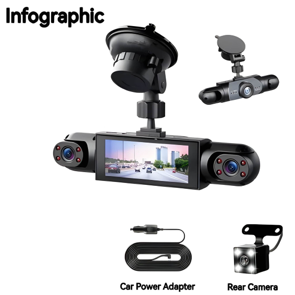 VYZIO® Četverokanalni auto DVR 1080p, širokokutni 150° za prednju, stražnju i bočne kamere | CAMERIK