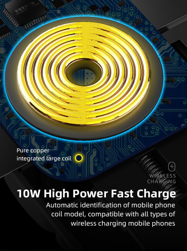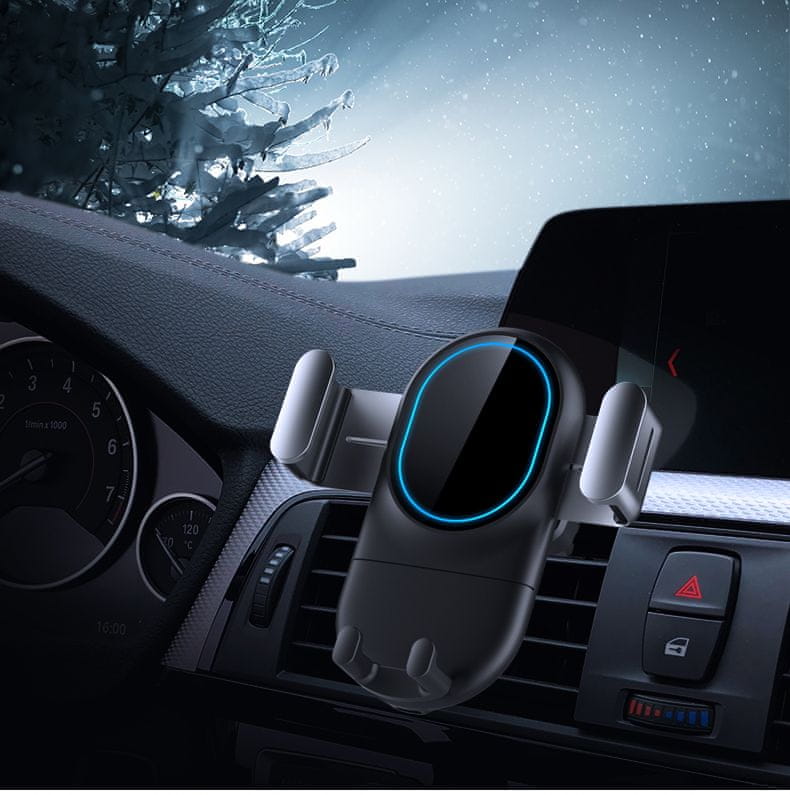 Auto punjač i držač za telefon kompatibilni su sa svim telefonima koji podržavaju QI bežično punjenje i imaju dijagonalu od 10,16 do 15,24 cm (4"-6"). Koriste inteligentnu tehnologiju za brzo i bežično punjenje. Zahvaljujući materijalu, osigurana je stabilna ugradnja telefona, a istodobno ga je moguće napuniti preko maskice ili futrole do 4 mm debljine. Držač se može okretati za 360 stupnjeva, tako da možete postaviti bilo koji kut. O punjenju indikatora obavještava vas LED indikatorsko svjetlo. Uključen je i mikro podatkovni kabel od 1 m.