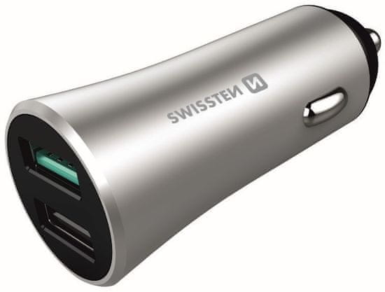 SWISSTEN CL adapter Quick Charge 3.0 + USB 2,4 A 30 W Metal 20111630, srebrni