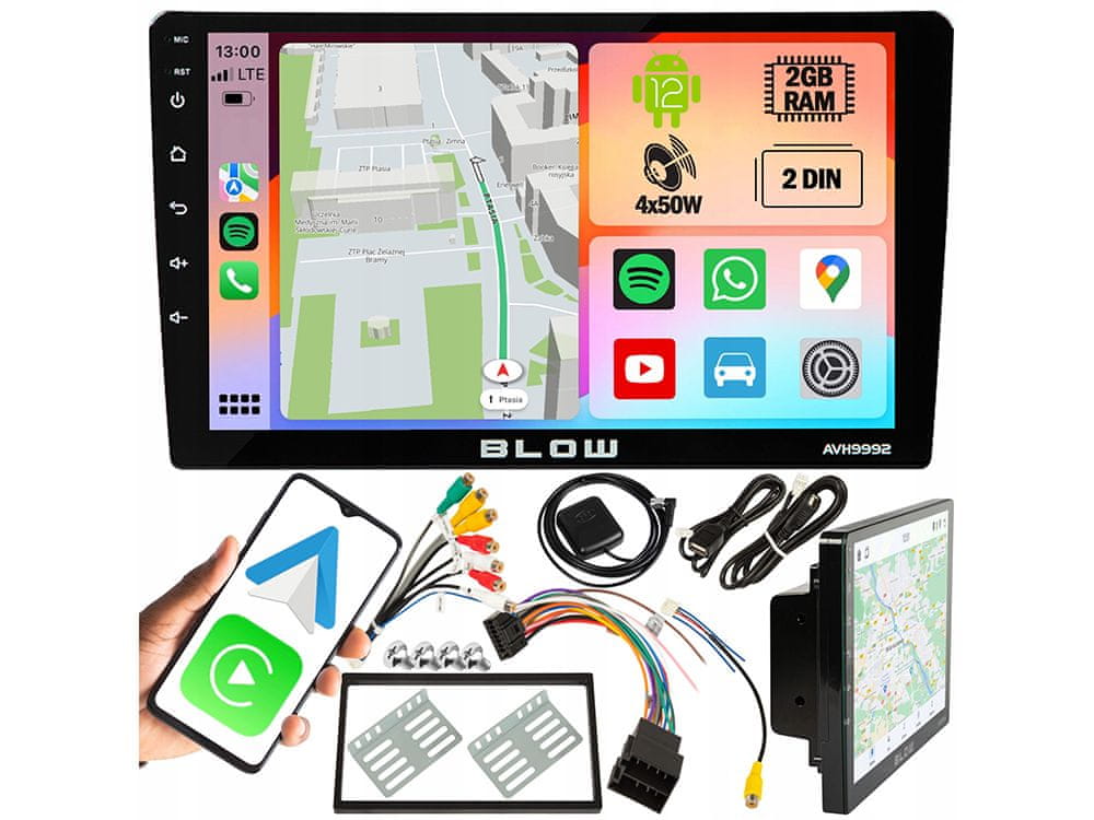 Blow AVH9992 auto radio, 2DIN, Android 12, ekran, RDS/FM Radio, Bluetooth, 4x50W, CarPlay + Android Auto