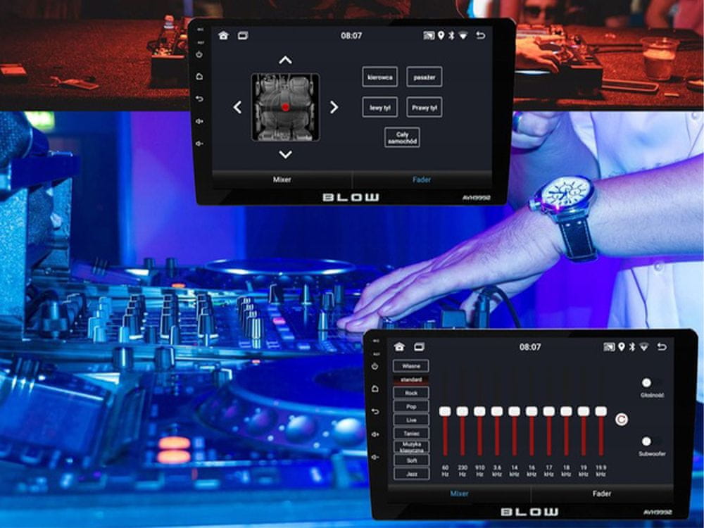 Auto radio Blow s multimedijskim sustavom i 22,86 cm (9") zaslonom u boji osjetljivim na dodir omogućuje reprodukciju radijskih frekvencija, glazbe, filmova i slika.