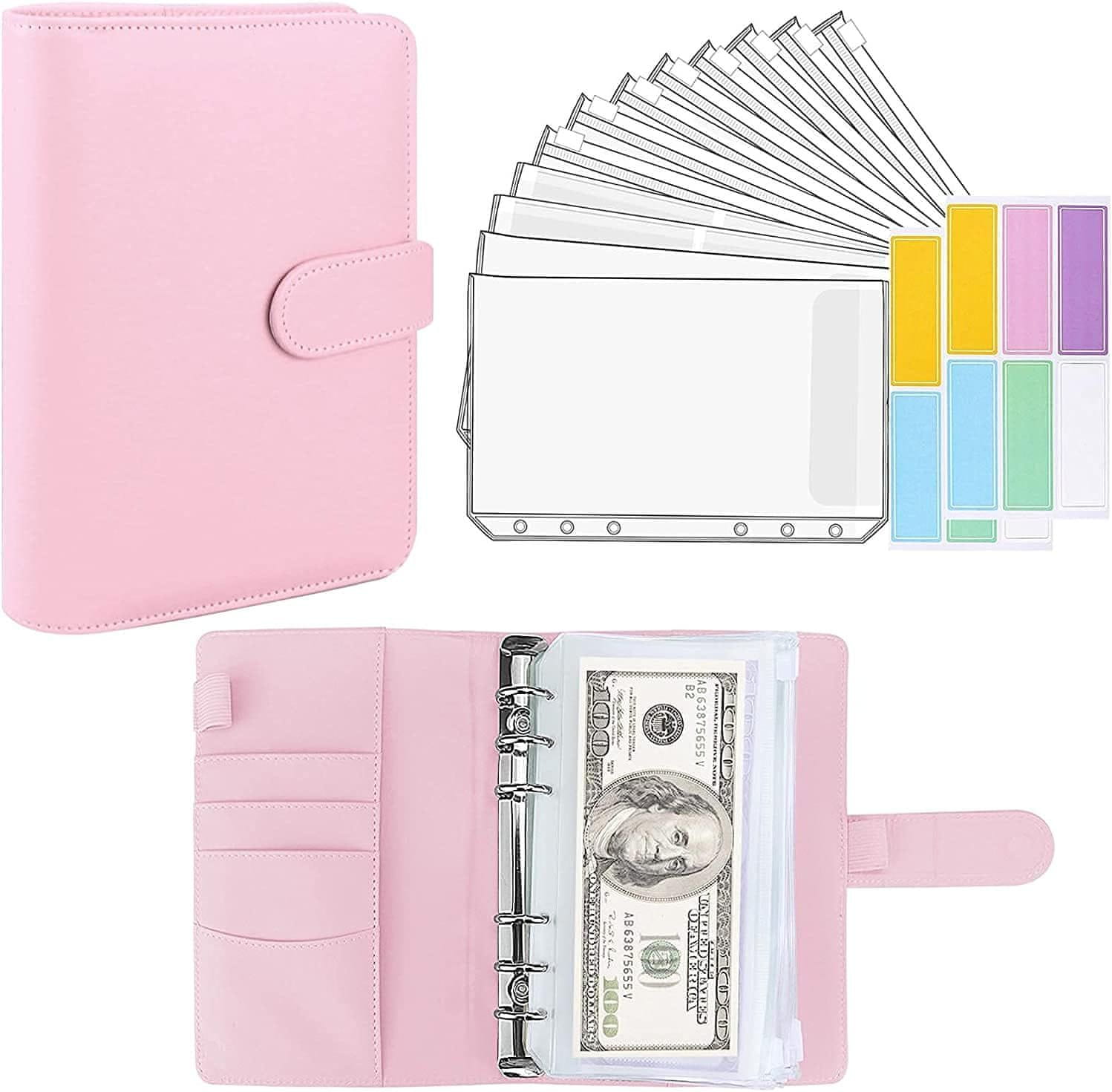 Nikcorp Planer za budžet A6 za upravljanje financijama, organizator s 12 vodootpornih omotnica i naljepnicama, PU koža, rozi