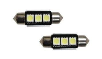 Komplet od dvije LED žarulje, svaka po 3 LED diode prikladan je za zamjenu konvencionalnih žarulja s C5W bazom duljine 36 mm. Njihovo bijelo svjetlo će se pobrinuti za moderan izgled osvijetljenog objekta. U usporedbi s klasičnim žaruljama, LED žarulje imaju dulji vijek trajanja, istodobno se zagrijavaju manje i troše manje energije. Uglavnom se koriste za pozicijska svjetla i žmigavce, kao i za osvjetljavanje unutrašnjosti vozila i tablica. U novijim vozilima s kontrolom pregorenih žarulja, preporučljivo je koristiti ih zajedno s M-LINE otpornikom za LED žarulje. |