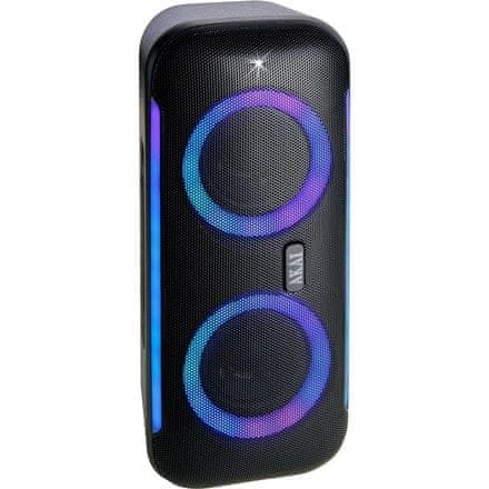 prijenosni zvučnik • snaga 40 W • glazba putem Bluetootha • bežično stereo uparivanje • IPX5 otpornost • AUX ulaz • USB ulaz • utor za SD karticu • trajanje baterije 7 sati • kapacitet baterije 3000 mAh