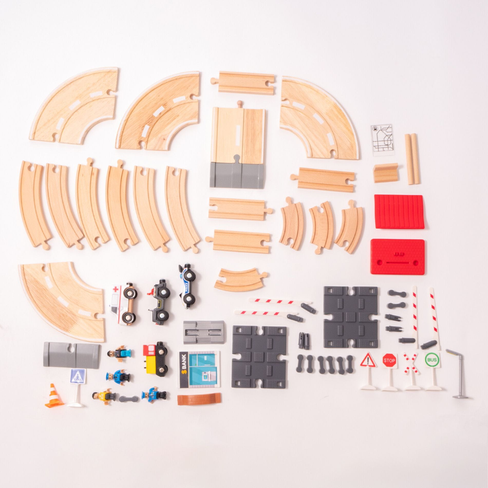 Vlakovna staza je dovoljno velika da se s njom može igrati više djece istovremeno.Drvena željeznička staza je idealan poklon za svaku priliku.