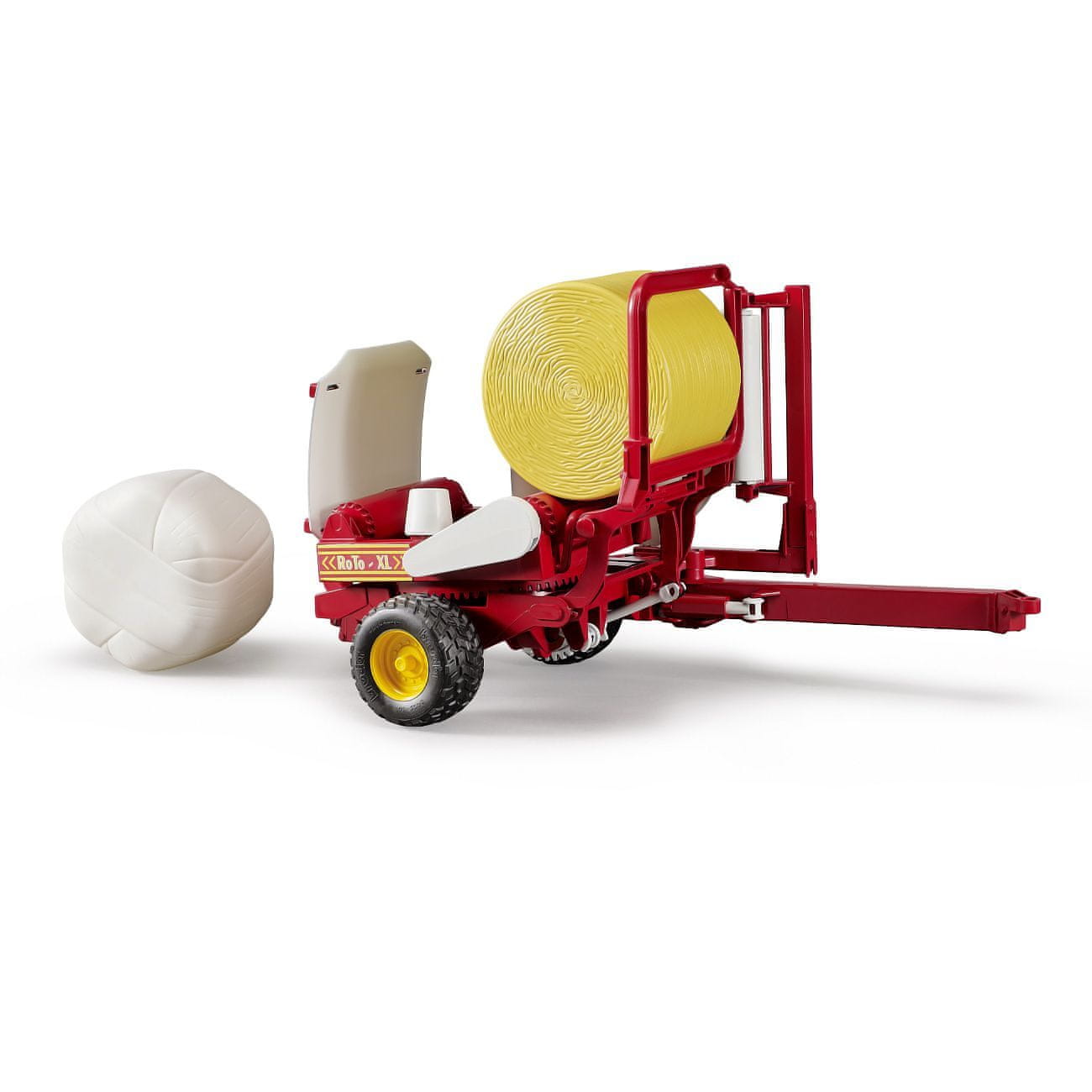 Ovaj stroj za baliranje sijena dolazi s smeđim i bijelim okruglim balama sijena. Radi se o vjernoj kopiji originalnog vozila u mjerilu 1:16. Replika je opremljena s puno pokretnih dijelova kao što je utovarna klackalica transporter za podizanje bale na okretni stol, nagibni okretni stol za pakiranje bale, rotirajući mehanizam za okretanje bale vertikalno-horizontalno oko osi, podesivi položaj vučne rude, profilirane gume. Vozilo vjerno simulira rad stroja za baliranje.