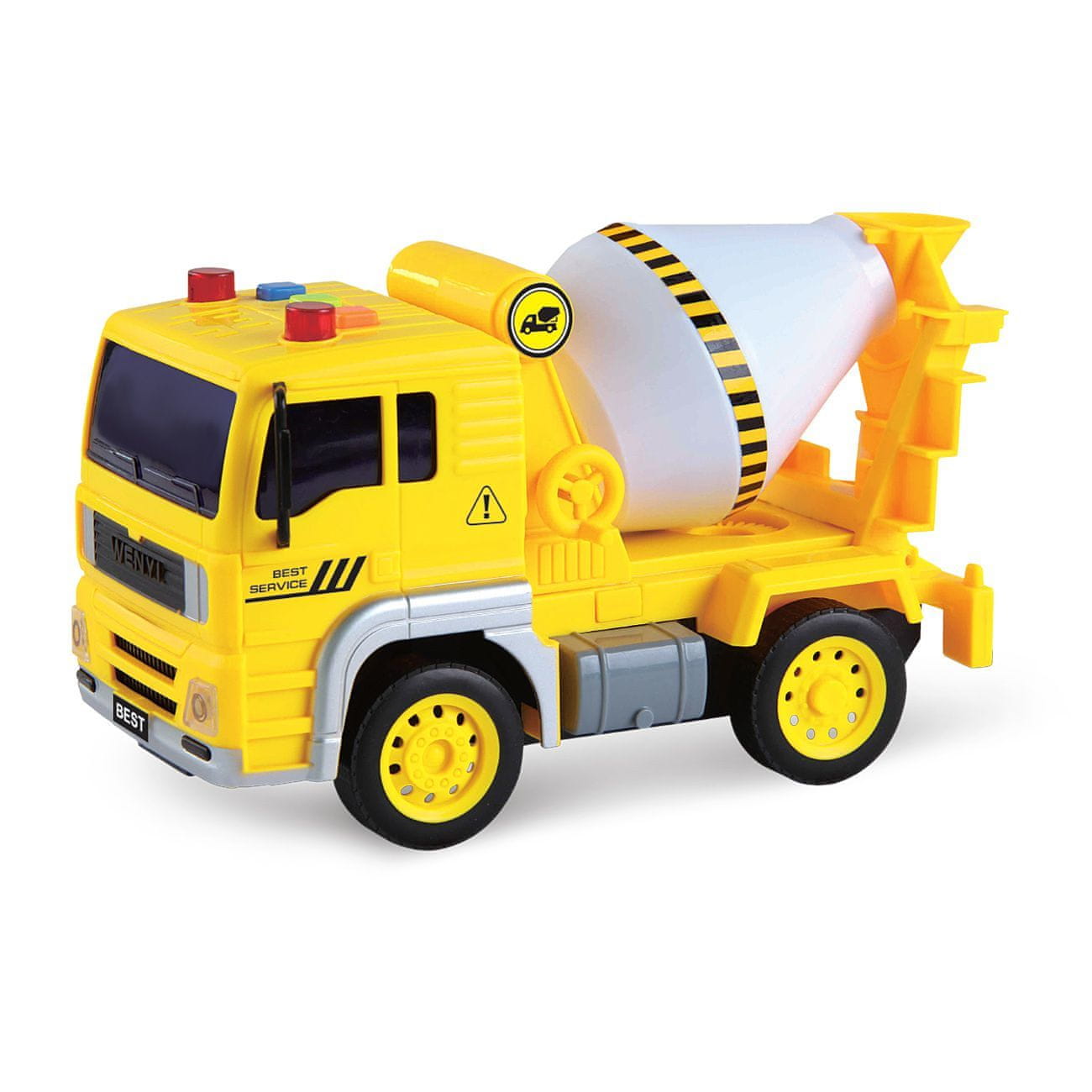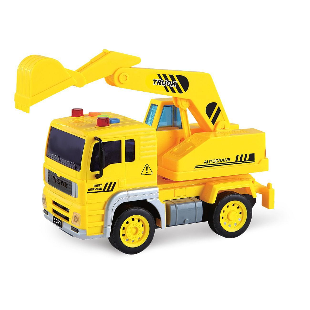 Dječji kamion. Mjerilo izrade 1:20. Funkcije: signalno svjetlo, zvuk motora, zvuk sirene. Značajke: pokretni dijelovi (nagibno korito, pokretni kran) ovisno o vrsti modela, pogon na trenje, gumeni kotači s profilom. Materijal izrade: plastika. Baterije: 3× AG13 dugmaste, u setu. Dob: 3+.