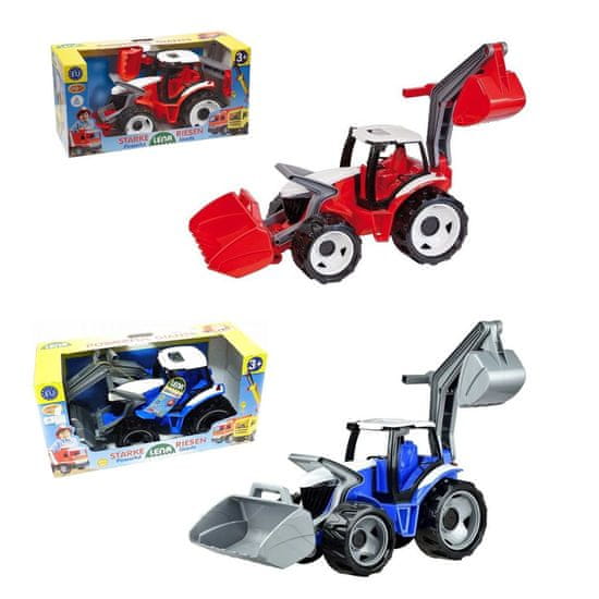 Traktor s prednjom žlicom i rovokopačem na poleđini, veličine 64 cm, iz plastike. Osovine pocinčani čelik 6 mm, velika žlica, pomični krov kabine, odvojiva ruka i sl. Za igru na otvorenom, zatvorenom. Dob: 3+. Dim. pak: 70.5×28.5×34.5 cm. U otvorenoj kutiji. Sorto: razne boje.