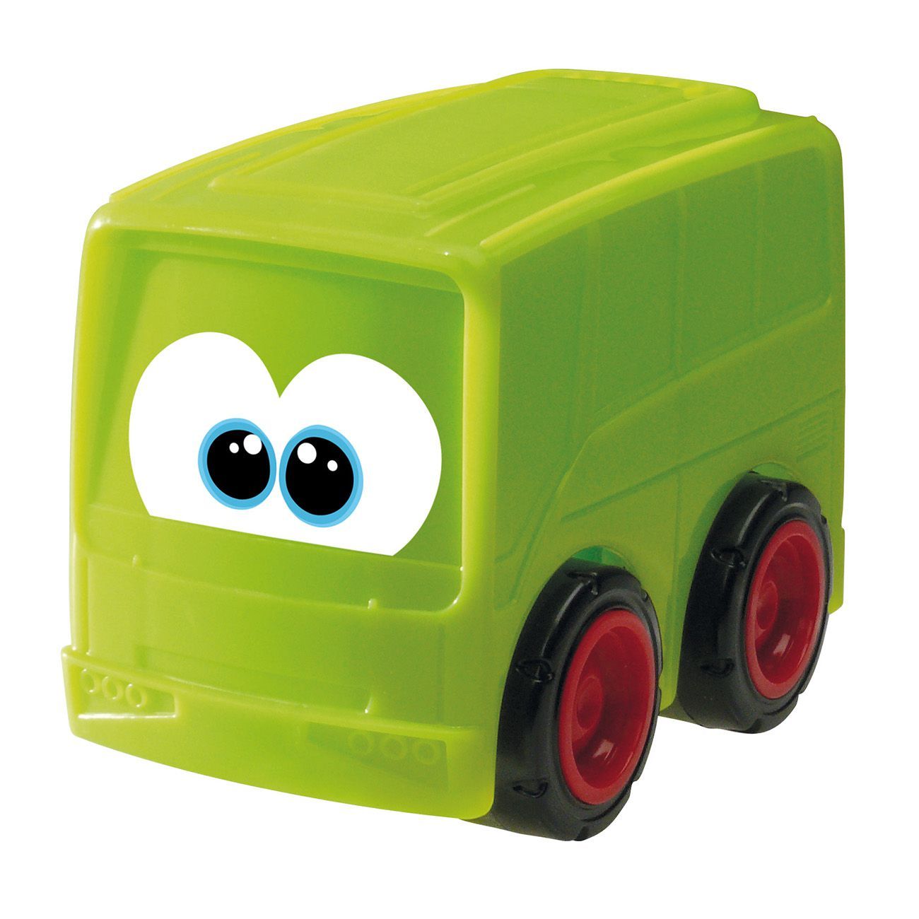 Asortiman od 8 modela vozila (autobus, avion, avion i sl.) 12 kom. u displeju. Svaki se prodaje zasebno, veličine oko 11 cm, ovisno o modelu. Od mekane plastike. Dob: 12mj+. Dim. pak: 40×28×12 cm. Težina: 1200 g. Pakiranje: otvorena zbirna displej kutija.
