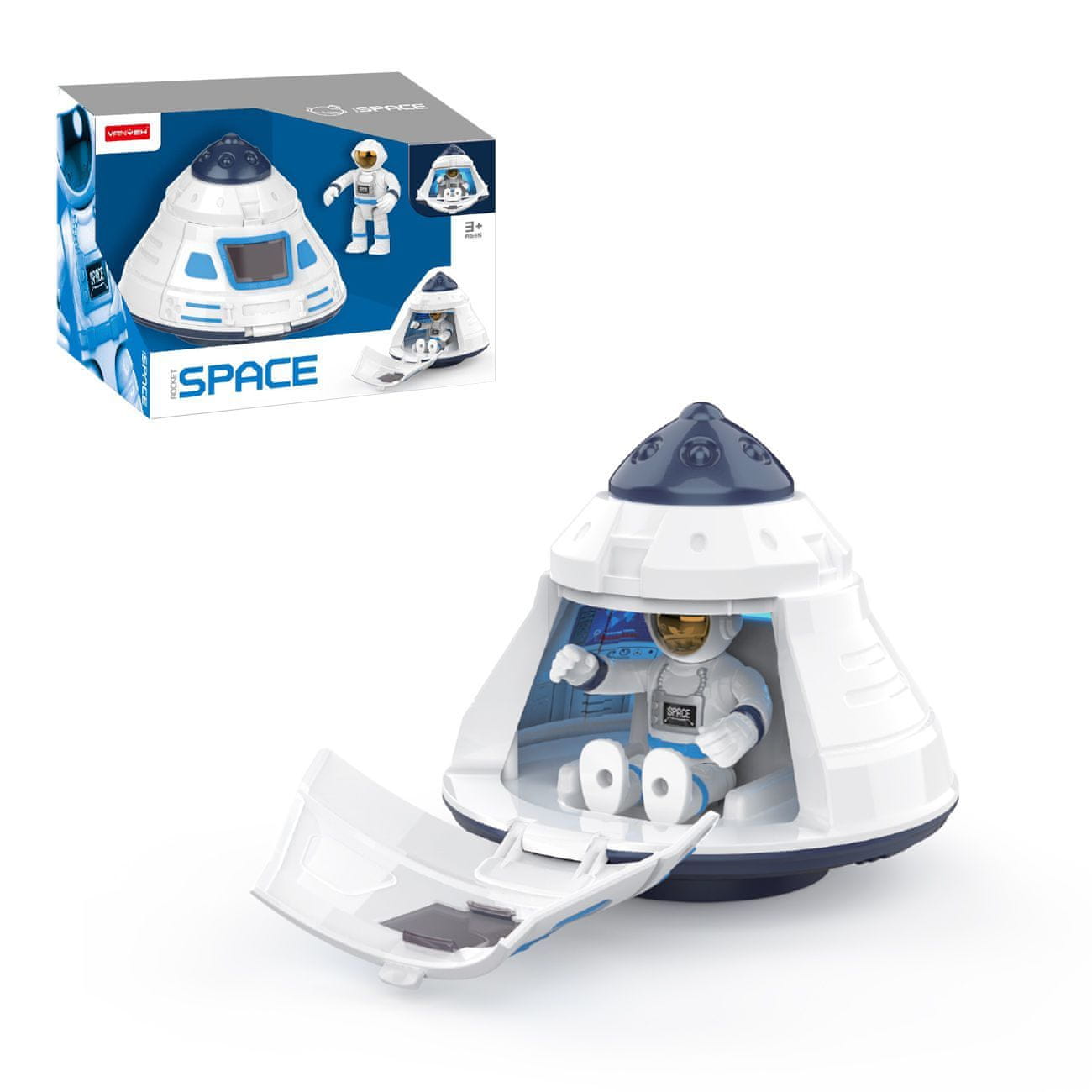 Vrsta: svemirski set za igru za djecu. U setu: 1× svemirska kapsula za slijetanje, 1× astronaut. Materijal izrade: plastika. Svjetlosni efekt. Baterije su potrebne 3× AG13. Dob: 3+. Veličina kapsule za slijetanje: cca. 11,5×11,5×10,5(dxšxv) cm. Veličina figurice astronauta: cca.