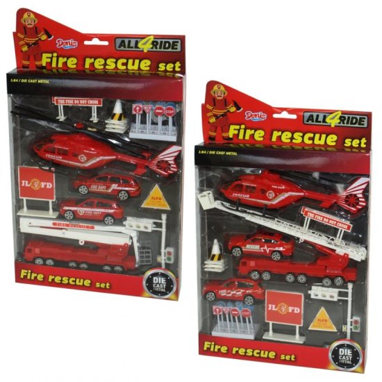 Zabavni vatrogasni kamion koji sadrži helikopter, kamion i 2 automobila. Sve što je potrebno da ugasite vatru! U paketu ćete također dobiti 15 različitih prometnih znakova i signalizacije. Helikopter i kamion imaju pokretne dijelove. Komplet je izrađen od plastike i metala i nije prikladan za djecu mlađu od 3 godine jer sadrži male čestice.