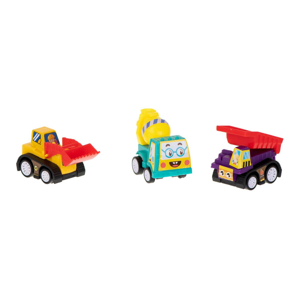 Set autića s pogonom. Šareno građevinsko vozilo ima pokretne dijelove kako bi igra bila zanimljivija. Set sadrži m.u miješalici za beton, valjak. Pakirano u folijsku ambalažu s zatvaračem. Dimenzije automobila: 5×4×3cm (pakiranje: 10×11×3cm)